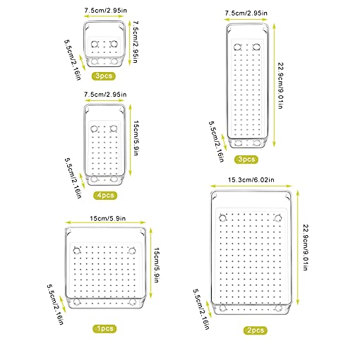 【Materiale eccellente】 Organizer per cassetti in polipropilene trasparente di alta qualità, durevole. Il design trasparente si abbina a quasi tutti gli arredamenti, consentendo di visualizzare facilmente i tuoi oggetti ed è disponibile in una varietà di dimensioni per facilità d'uso