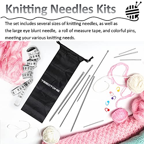 Yeestone - Set di ferri da maglia, 22 pezzi in acciaio inox a punta singola da 2 mm (B)-8 mm (L) (11 paio-11, 35,6 cm) con custodia per ferri da maglia