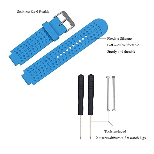 YEFOD, cinturino di ricambio per Garmin Forerunner 235/230/630/220/620/735XT GPS, in morbido silicone, accessorio di sostituzione per orologio da corsa, compresi strumenti e alette, Blue