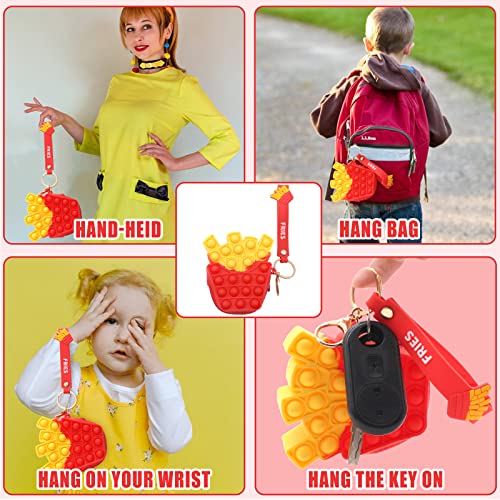 Yefun Pop Borsa, 2 in 1 Portafoglio per Giocattoli Fidget da Donna, Borsa Piccola con Cerniera Borsa in Silicone Carino Cordino per Portachiavi (Patatine Fritte)