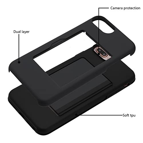 YegaXF Cover per Iphone 6plus/7plus/8plus Slot per Schede Color Moda Custodia aPortafoglio 【Antiurto】 pc+TPU,Custodia a Portafoglio con Tasche Porta Carte(Nero)