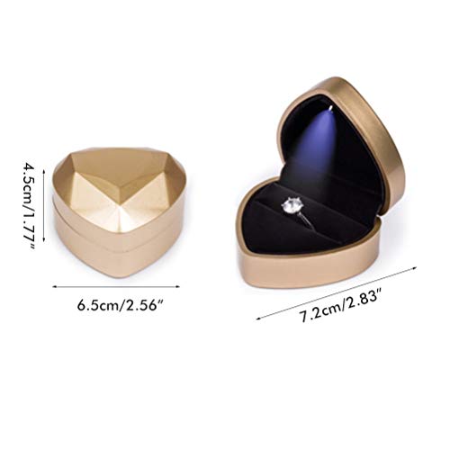 Yeglg - Scatola per anelli a forma di cuore, in velluto, per gioielli, per gioielli, per presentazione, con luce a LED, per proposta, fidanzamento, cerimonia nuziale, regalo di compleanno