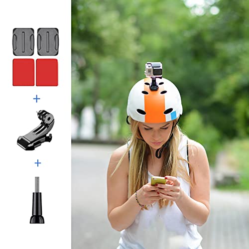 YEHOLDING Supporto per mento con cinturino per casco integrale da moto + Extra per diversi scenari di montaggio adesivo piatto e curvo per GoPro Insta360 DJI SJCAM APEMAN ecc (Black)