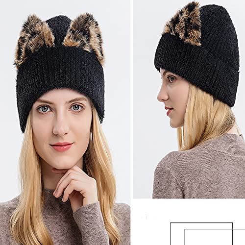 YEKEYI Beanie Hat per le donne Cute Cat Ear Beanie Cappello invernale con corna Beanie Cappelli Beanie Knit Cuffed Caldo Cappelli da sci, BLACK, 7125