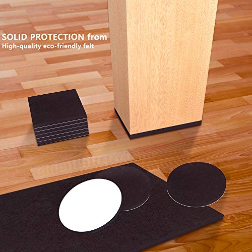 Cuscinetti per mobili in feltro: i nostri feltrini per mobili sono realizzati in feltro resistente, che mantiene la sua forma più a lungo di qualsiasi altro tappetino per mobili. L'aggiunta di feltro adesivo sotto i mobili fornisce un morbido, antigraffio, una barriera tra i mobili e le superfici del pavimento.