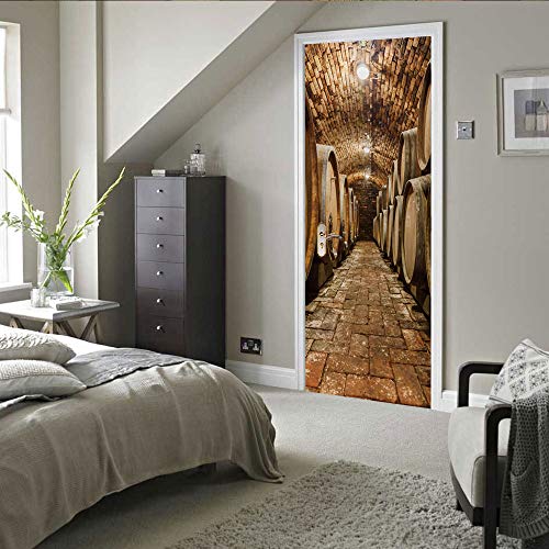 Yelilad Adesivi per Porte Interne 3D Soggiorno Camera da Letto Bagno Impermeabile Rimovibile aggiornamento Professionale in Vinile, Cantina Vintage Botte 77x200cm