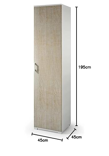 Yellow shop - Armadio mobile 1 anta 4 ripiani L45xP45xH195 cm COMPOS Bianco - Cemento - Rovere texture 3d (Bianco/Rovere)