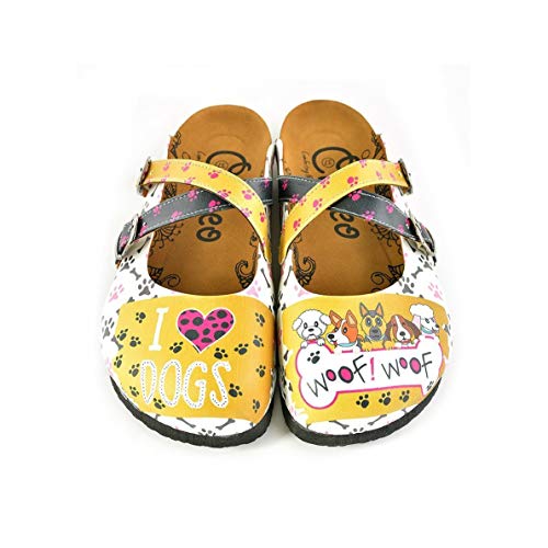 Goby Yellow & White I Love Dogs Crisscross Clogs WCAL149