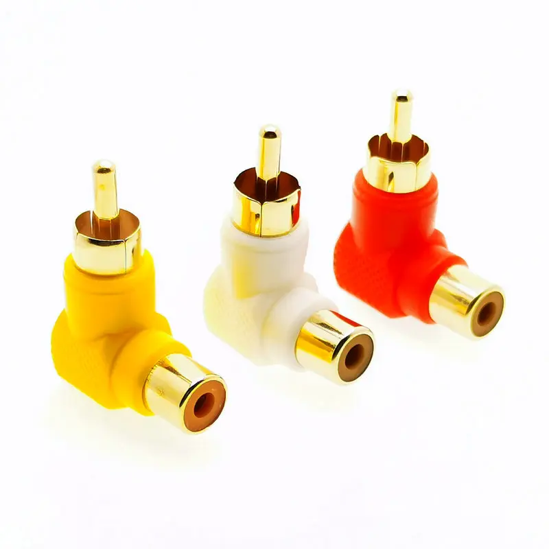 3PCS Red yellow white Plating Gold 90 Elbow RCA Male To Female Audio Adapter Connector