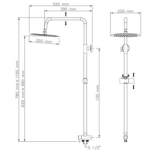 Yellowshop - Colonna doccia con saliscendi completa di doccetta soffione e flessibile POSEIDON