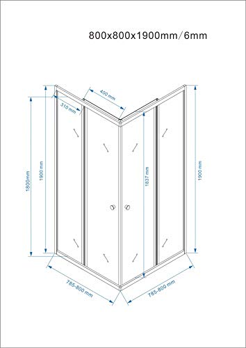 Yellowshop - Box Doccia Angolare 70 80 90 100 120 Cabina Bagno In Cristallo 6 MM Rettangolare Quadrato Curvo Serie Smart (Cm 80 x 80 Quadrato, Cristallo 6mm Puntinato Opaco)