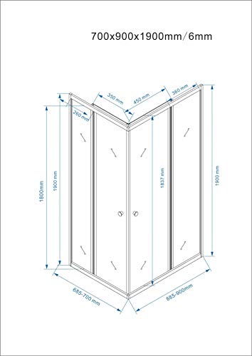 Yellowshop - Box Doccia Angolare 70 80 90 100 120 Cabina Bagno In Cristallo 6 MM Rettangolare Quadrato Curvo Serie Smart (Cm 70 x 90 Rettangolare, Cristallo 6mm Puntinato Opaco)