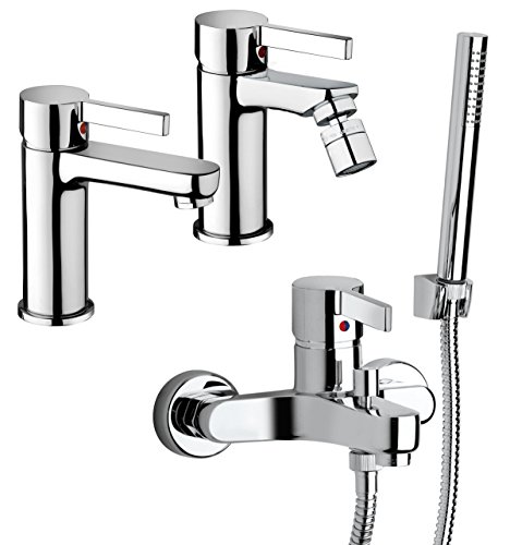 Yellowshop - Set Miscelatori Rubinetteria Bagno Lavabo Bidet Esterno Vasca Con Doccia Modello Abbracci Completo Con Flex Inox Piletta Sanitari Rubinetto