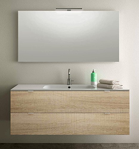 Yellowshop - Mobile Mobiletto Sospeso Da Bagno In Legno Cm 120 Completo Di Lavabo In Mineralmarmo E Specchiera Led Arredo Moderno Modello Andrè Varie Colorazioni (Miele tranché 02)