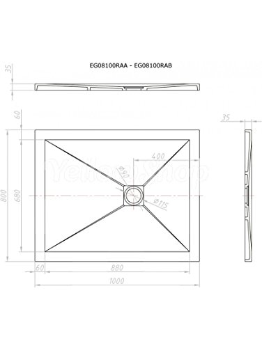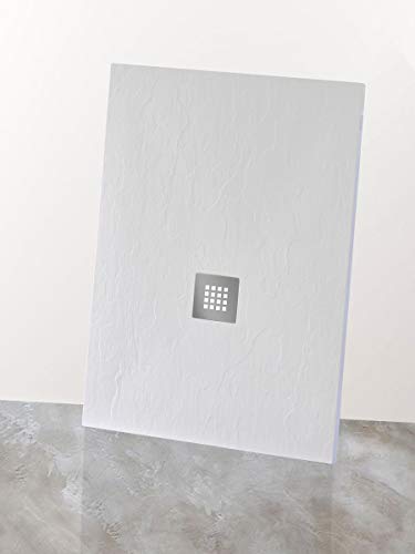 Yellowshop - Piatto Doccia Rettangolare In Marmoresina Ardesia Bianco, Dimensioni cm 70x100, 80x100, Con Griglia In Acciaio Inox