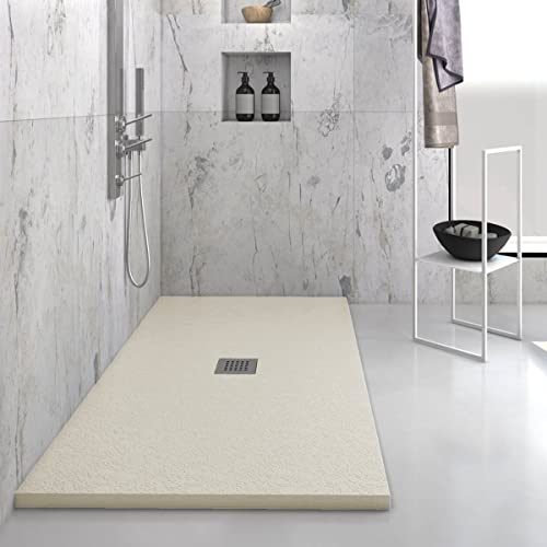 Yellowshop - Piatto doccia rettangolare in marmoresina base 70 cm h 2,5 cm HEAVY Sabbia con sifone, piletta e copripiletta inox (Cm 70x90)