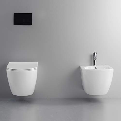 Yellowshop - Sanitari bagno sospesi filo muro - Wc rimless, copriwc soft close e bidet mod. Hoop