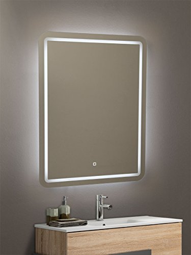 Yellowshop - Specchio Specchiera Cm L.60 x H.80 A Luce LED Retroilluminato Filo Muro Bagno Design Moderno con Touch Modello Border 68