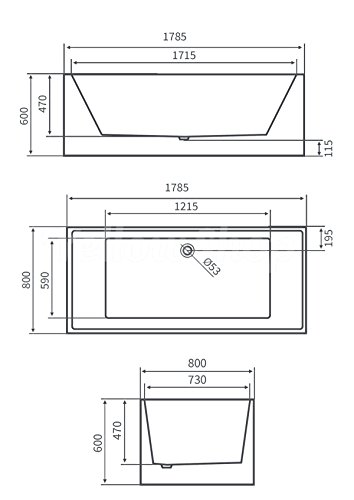 Yellowshop - Vasca Vasche Da Bagno Rettangolare Freestanding Modello Kube, Free Standing Design Centro Stanza Moderna Dimesione Cm 179x80 Altezza 60