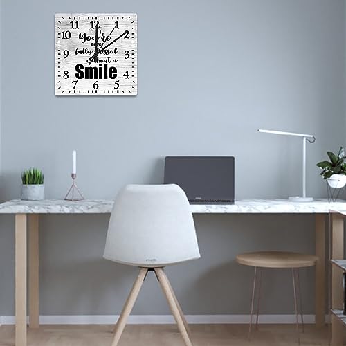 Yelolyio Orologio da parete quadrato "You're Never Fully Dressed Without A Smile", grande orologio da parete con citazione ispirata, 30,5 cm, quadrato, silenzioso, senza ticchettio, unico orologio in