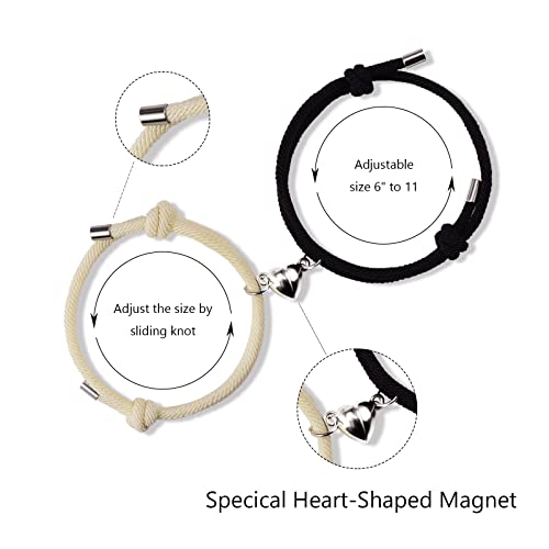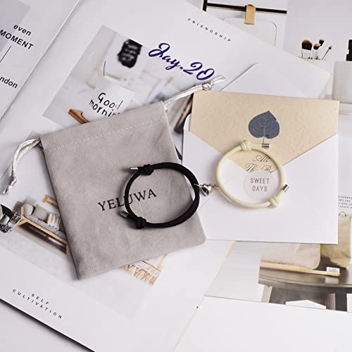YELUWA 2 Pezzi Braccialetti Magnetici per Coppie per Donna Uomo Attrazione Reciproca Fatta a Mano Bracciali Abbinati a Lunga Distanza Voti di Amore Eterno Regalo di San Valentino, Nero/Bianco Corda