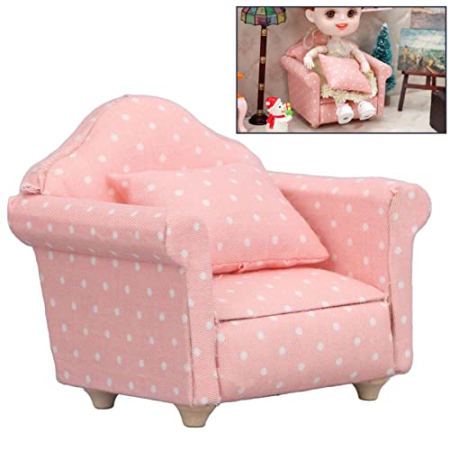 YEmirth Divano per casa delle Bambole con Cuscino 1/12 Scala Mini Divano in Legno Poltrona Mobili Sedia per Bambole Telaio Divano Singolo Poltrona Sedia da Lettura Soggiorno