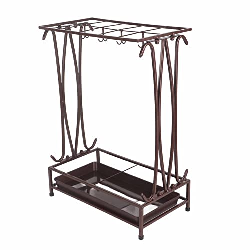 YEmirth Portaombrelli Portaombrelli Portaombrelli, Portaombrelli Portaombrelli Ferro con Vassoio Antigoccia 10 Fori 8 Ganci Portaombrelli Portaombrelli per Home Hotel Lobby(Bronzo)