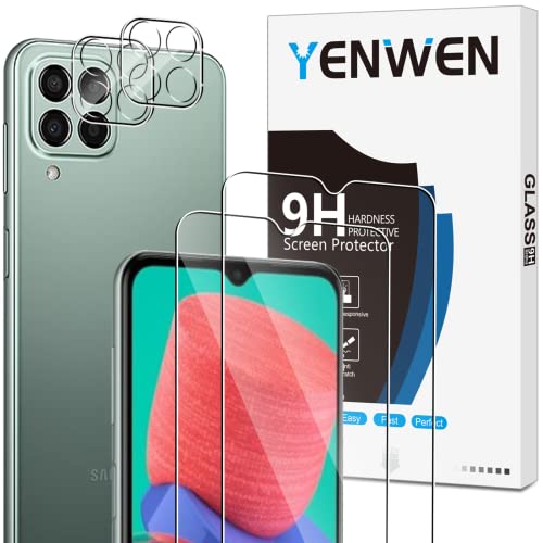 Yenwen [4 Pezzi] Vetro Temperato Compatibile con Samsung Galaxy M33 5G, 2 Pezzi Vetro Temperato Pellicola Protettiva + 2 Pezzi Pellicola Fotocamera, Antigraffio, Durezza 9H, Senza Bolle