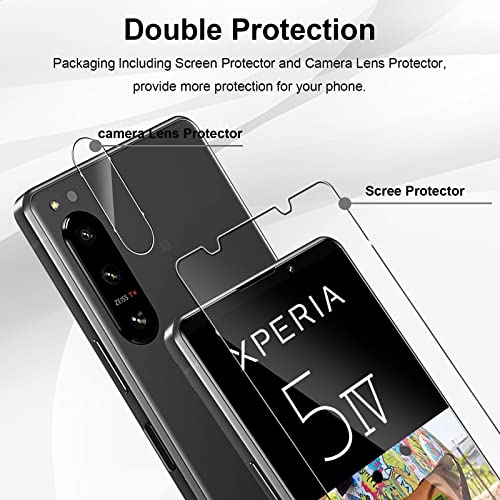 [Compatibilità]: Includi 2 Pezzi Pellicola Vetro Temperato + 2 Pezzi Fotocamera Posteriore Pellicola Vetro Temperato Compatibile con Sony Xperia 5 IV 5G.