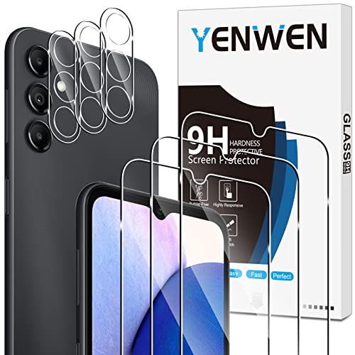 Yenwen Vetro Temperato per Samsung Galaxy A14 4G / 5G, 3 Pezzi Pellicola Protettiva + 3 Pezzi Pellicola Fotocamera, Senza Bolle Antigraffio Durezza 9H Vetro Temperato Schermo Pellicola