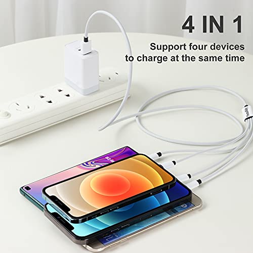 ECCELLENTE DESIGN 4 IN 1: Un cavo = 4 cavi! Design 4-in-1 all'avanguardia con 3 diverse porte usb (2 * Phone + 1 * Type C + 1 * Micro USB). Il cavo del caricatore multifunzione può caricare più dispositivi elettronici contemporaneamente. La corrente di uscita totale massima può essere fino a 3 A (totale, non a ciascuna estremità). Può essere solo addebitato, non trasmissione dati.