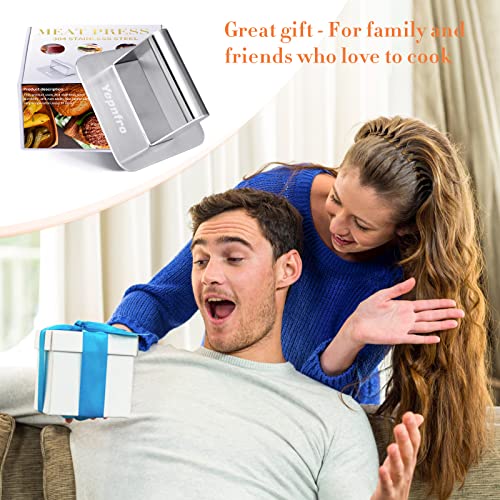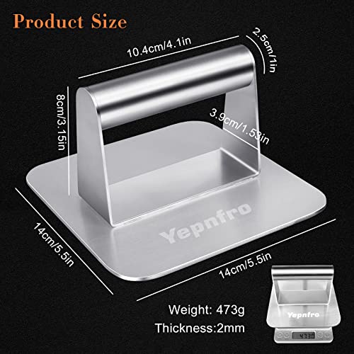 Yepnfro Pressa per Hamburger 14cm, Quadrata Pressa Hamburger in Acciaio Inox Pressa per Pancetta Antiadherente per Barbecue, Polpettone, Bistecche, Pressa per Carne Professionale per Grill (Quadrato)