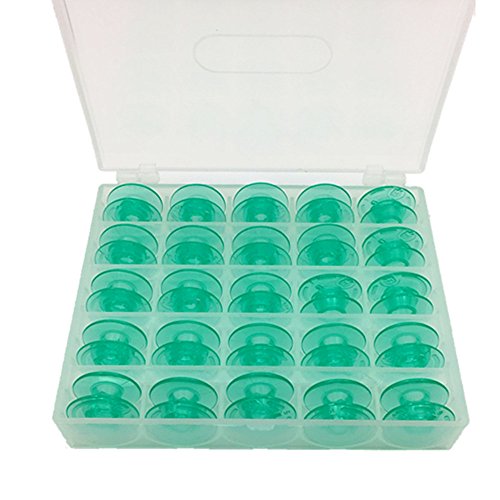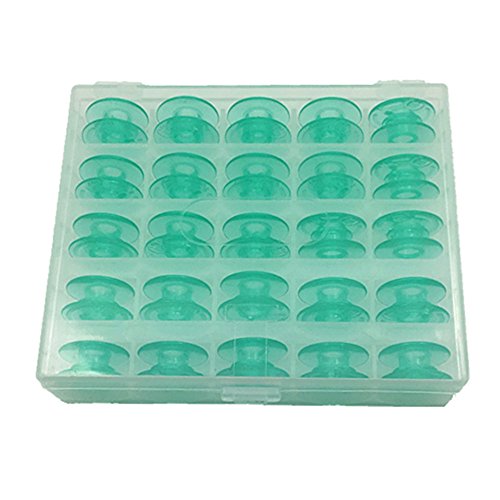 Questo elenco è per una scatola di plastica e 25 bobine in plastica trasparente verde per molte macchine da cucire Viking Husqvarna e White Home. Parte #4125615-45 #4123078-G #4123078-45 Queste sono bobine generiche. Si adatta ma non sono realizzati da Viking.