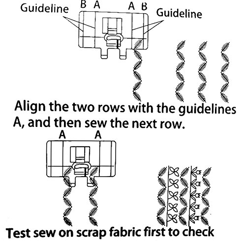 Avete problemi di allineare o distanziare uniformemente i vostri disegni di bordo? Ora il piedino guida per bordi ti aiuta a abbinare facilmente i tuoi disegni di bordo con le linee rosse del piede. Non c'è bisogno di segnare ogni riga in anticipo!
