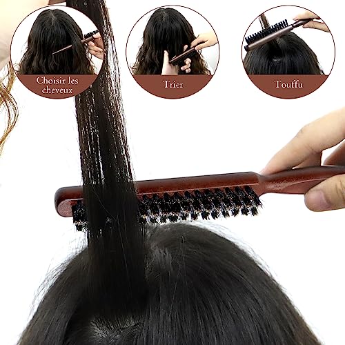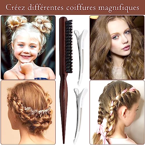 【Dimensioni del Prodotto】: Pettine in setola di maiale: 24*3,5*1,5 cm, fermaglio per capelli antitraccia: 11 cm. dimensioni mini, facile da trasportare. Design antistatico per prevenire i danni statici ai capelli e renderli sani e morbidi. Mantenete il vostro stile e la vostra bellezza in ogni momento.