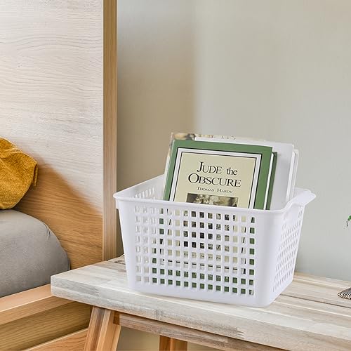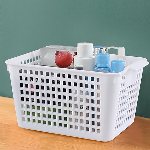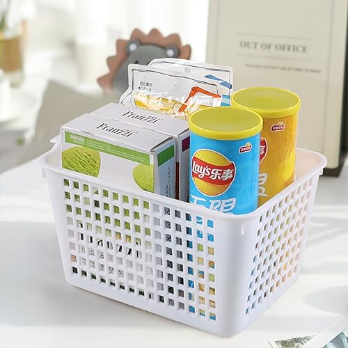 Yesdate Set di 6 cestini portaoggetti in plastica, cestini portaoggetti per dispense, bianco