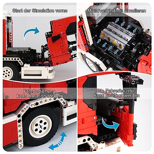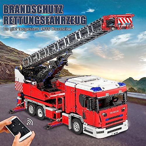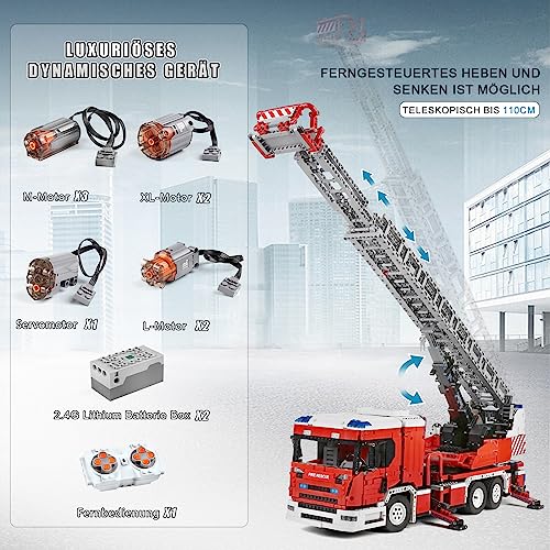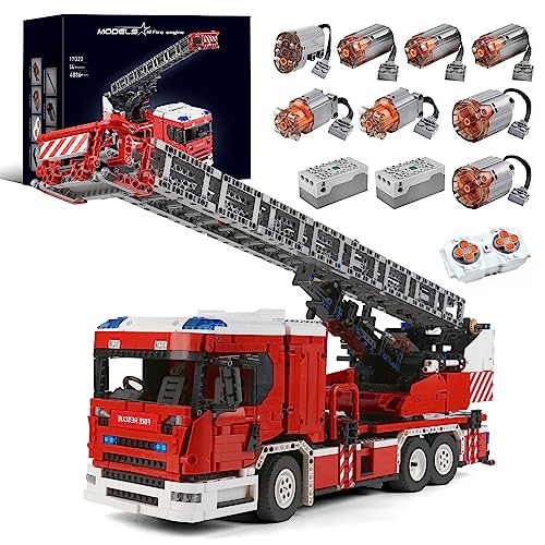 YESHIN Kit telecomandato del camion dei pompieri di tecnologia 17022 con la scala girevole, blocchi di morsetto del carro della scala antincendio di tecnologia 4886 delle parti con 8 motori