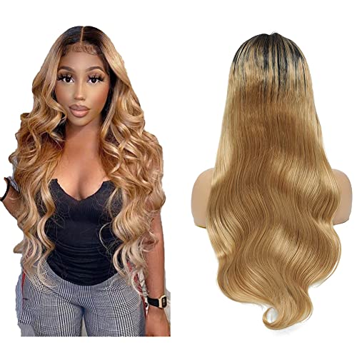 YesJYas Lace Front Wig Honey Blonde Wig Human Hair 1B/27 Colored Highlight Brazilian Virgin Hair Wigs 4x4 Lace Closure Wigs Transparent Human Hair Wigs For Black Women 28 Inch