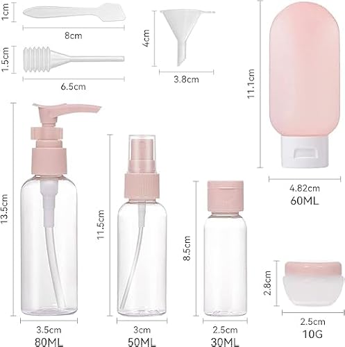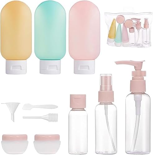 YESYAMO 11 PEZZI Bottiglie da viaggio Set di bottiglie di plastica di ricarica portatili, con flaconi spray, contenitori per cosmetici liquidi bottiglie di pompaggio e vasetti di crema.