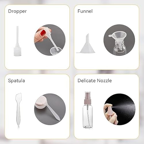 Facile da usare: l'accessorio da viaggio è chiuso da un tappo a vite che sigilla fortemente. L'ampia apertura e i diversi design di chiusura della bottiglia di plastica trasparente sono adatti per riporre vari cosmetici e articoli da toeletta, facili da estrarre e riutilizzabili.