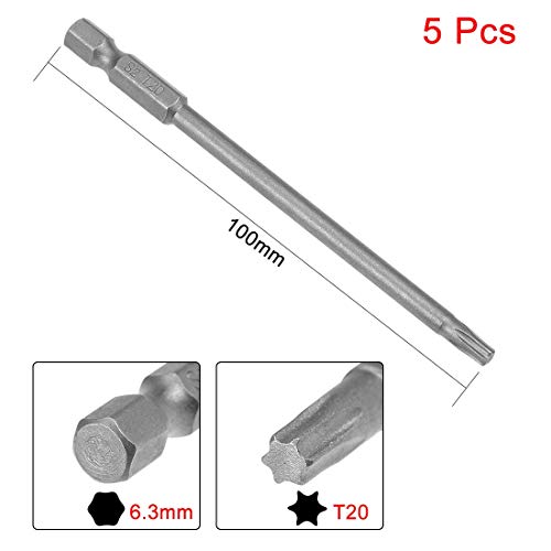 YeVhear 5 pezzi 100 mm lungo 1/4 pollici attacco esagonale T20 cacciavite a testa Torx magnetico punte S2 acciaio legato alta