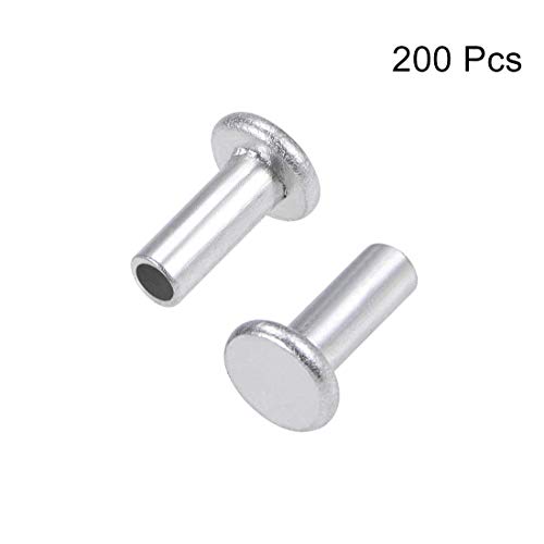 YeVhear 200 pezzi 4 mm x 10 mm Rivetti semi-tubolari a testa piatta in alluminio color argento