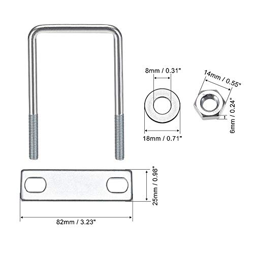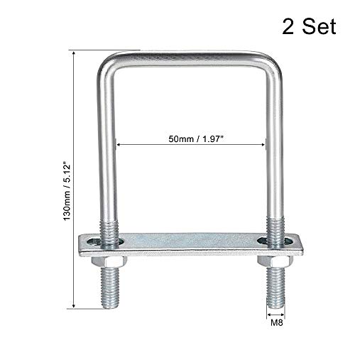 YeVhear Square U-Bolts 2 (50 mm) larghezza interna 130 mm lunghezza acciaio al carbonio M8 con dadi, piastra di telaio, rondelle rotonde. 2 set
