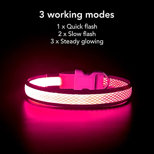 YFbrite - Collare per cani con luce LED, ricaricabile, collare per cani lampeggiante, regolabile, riflettente e di sicurezza che illumina di notte (rosa, medio)