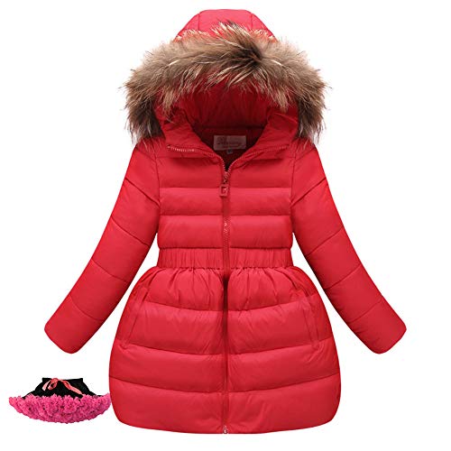 YFPICO Bambina Giacca di Piuma Ragazza Cappotto di Piumino con Cappuccio Parka Invernale a Vento, Rosso, 3 Anni/ 120