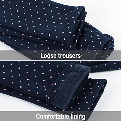 YFPICO Ragazze Stampate Leggings Invernali Caldi Leggings Elastici Spessi Collant di Velluto Lunghi Pantaloni Morbidi e Comodi, Pois blu navy, 6 anni Etichetta 120