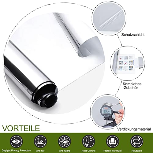 YFWUQI Pellicola a specchio per finestre, protezione da sguardi indiscreti, per finestre interne o esterne, pellicola riflettente, autoadesiva, protezione UV, per bagno, ufficio, casa