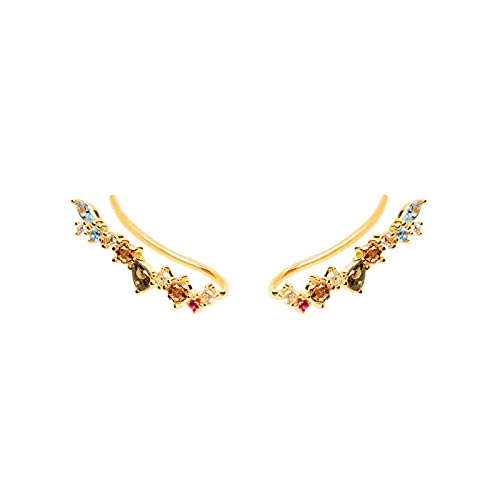 YFZCLYZAXET Orecchini Orecchino Donna Uomo S925 Argento Moda Piccola Goccia d'Acqua Dolce Geometrica Zircone Multicolore Senza Clip per Orecchio Forato Fibbia per Orecchio Orecchini Femminili-Oro