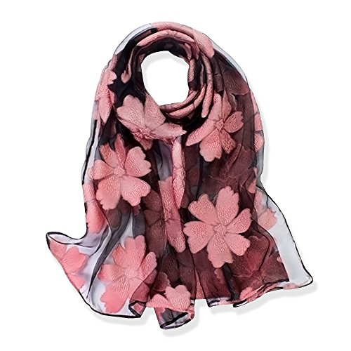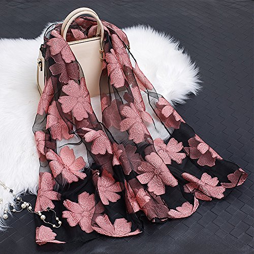 YFZYT Lady Donna Elegante Scialle Sciarpa Morbida Collo Wrap Foulard Stola con Motivo Foglie Ricamate - Fiore Rosa