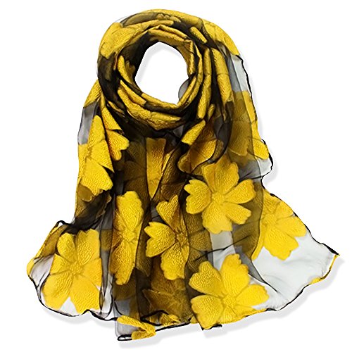 YFZYT Lady Donna Elegante Scialle Sciarpa Morbida Collo Wrap Foulard Stola con Motivo Foglie Ricamate - Fiore Giallo